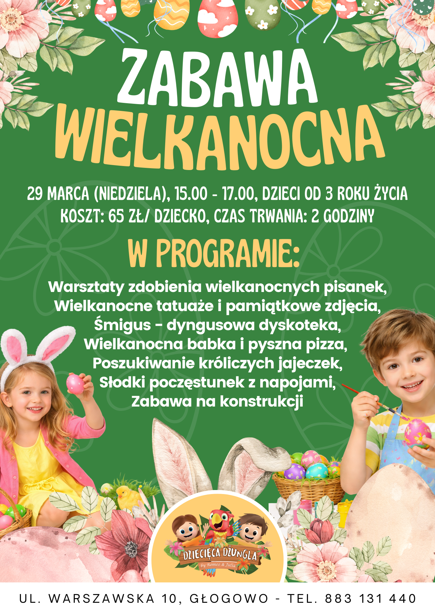 Zapraszamy wszystkie dzieci na radosną Zabawę Wielkanocną pełną kolorów, śmiechu i kreatywnych atrakcji! 29 marca w godzinach 15:00–17:00 czeka na najmłodszych mnóstwo aktywności, które wprowadzą ich w świąteczny klimat. To dwie godziny świetnej zabawy, nowych przyjaźni i wielkanocnych niespodzianek.