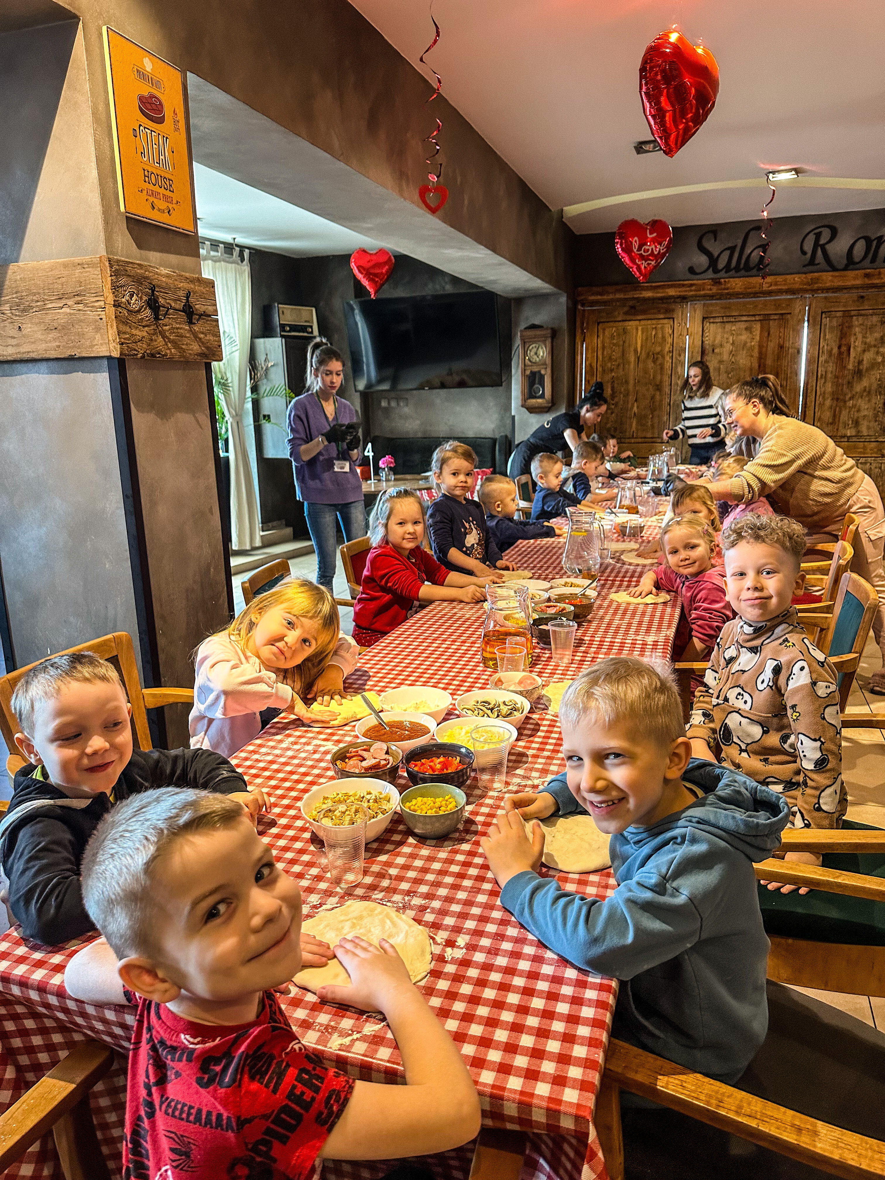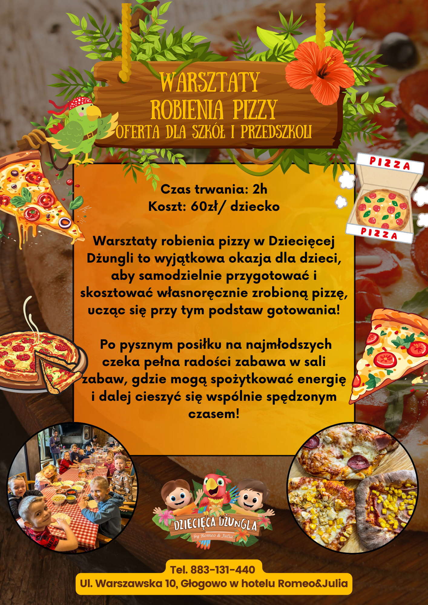 Warsztaty robienia pizzy to pyszna zabawa, podczas której dzieci wcielają się w rolę małych kucharzy. Każdy uczestnik samodzielnie przygotowuje swoją pizzę – od rozciągania ciasta, przez wybór ulubionych dodatków, aż po pyszną ucztę po upieczeniu. To nie tylko kulinarna przygoda, ale także świetna okazja do nauki, rozwijania samodzielności i wspólnego świętowania z pysznym efektem na talerzu! A po jedzonkun na dzieci czeka szalona zabawa w naszej sali zabaw!